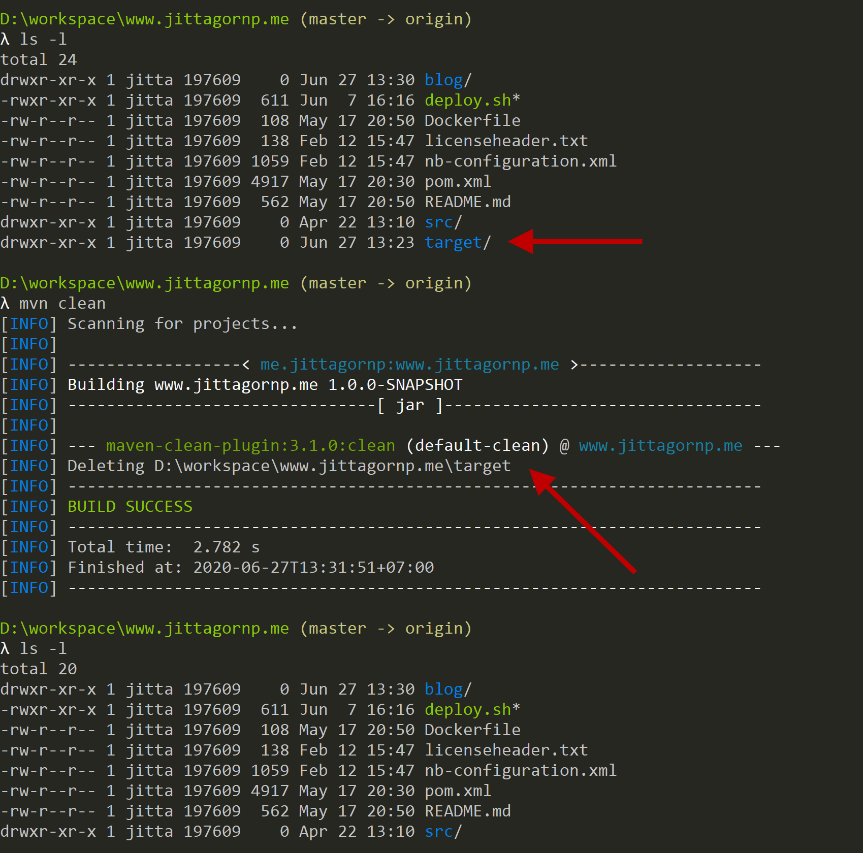 $ mvn clean -f d:/workspace/www.jittagornp.me/pom.xml