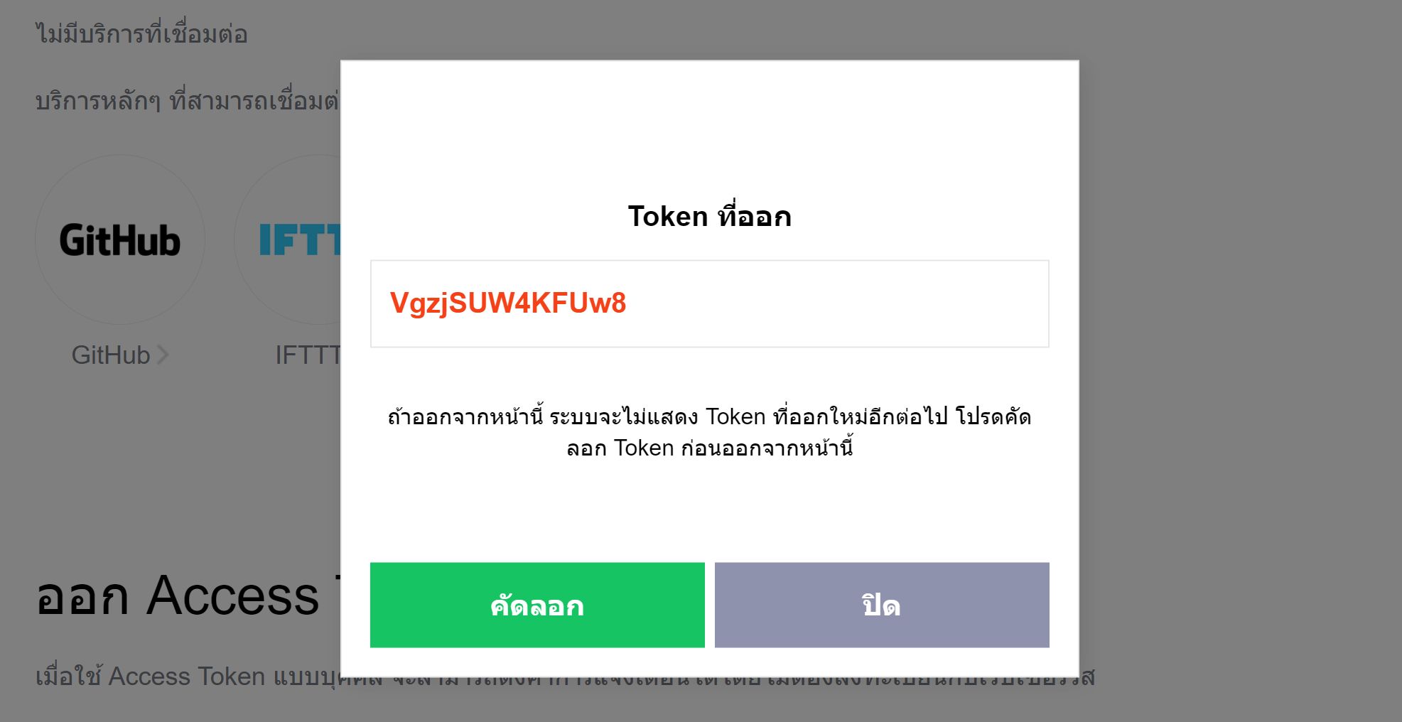 ให้ทำการ Copy Token นี้เก็บไว้ อย่าให้หาย เพราะถ้าหายต้องออก Token ใหม่อย่างเดียว