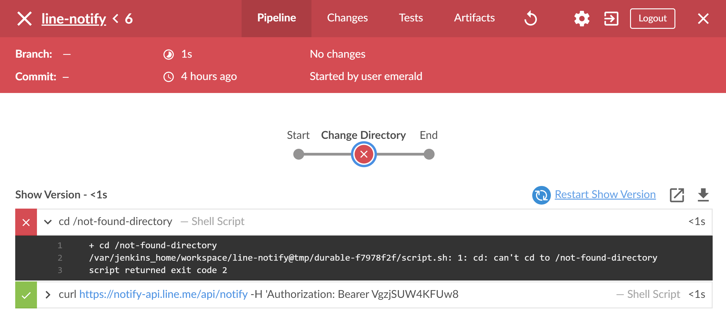 notify ใช้สำหรับแจ้งเตือนเข้า Line ผ่านคำสั่ง curl ของ Linuxsteps เรามีการ try/catch คำสั่งไว้ ถ้าเกิด Exception ขึ้น ก็จะทำการ notify message ไปยัง Line ที่กำหนดPipeline Build Fail