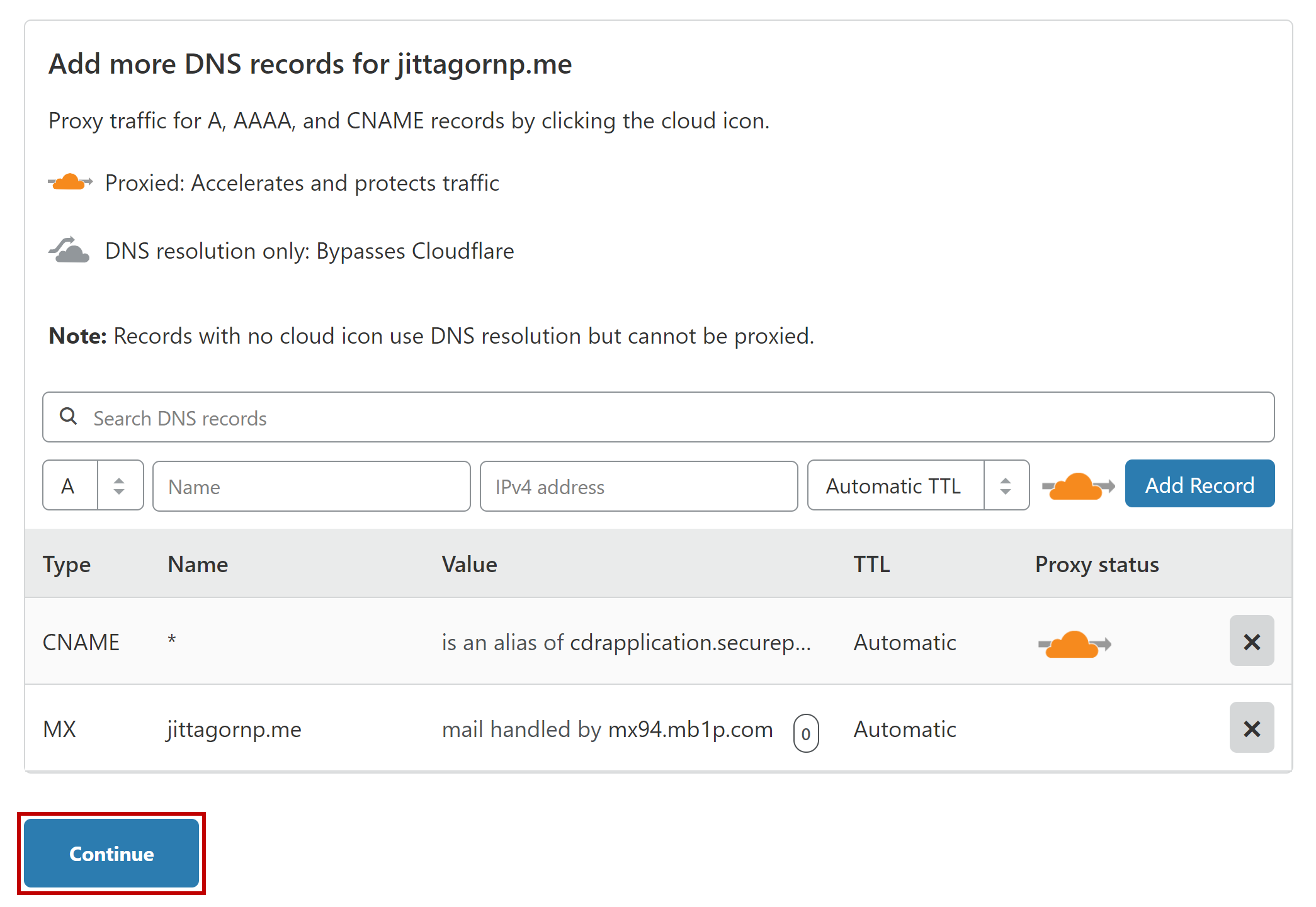 เราสามารถเพิ่ม DNS Records Type อื่น ๆ ได้เรื่อย ๆ ขึ้นอยู่กับว่าเราใช้ Domain Name นี้ หรือ Site นี้ทำอะไรบ้างดังรูป