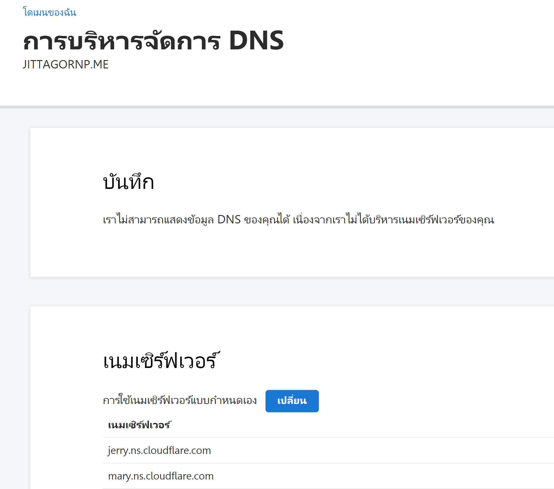 ให้เราแก้ตรง Nameserver เดิมที่เคยเป็นของ GoDaddy ให้เปลี่ยนไปใช้ของ Cloudflare ดังรูป