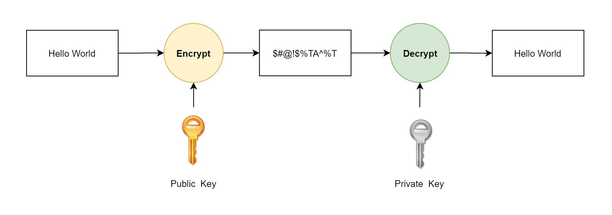 เราก็จะเอาข้อมูลที่ต้องการจะส่ง มาทำการเข้ารหัส (Encrypt) ด้วย Key เพื่อไม่ให้ใครอ่านข้อมูลนั้นออก (ยกเว้นคนที่เราต้องการจะส่งข้อมูลไปหาจริง ๆ เท่านั้น ถึงจะอ่านข้อมูลออก)